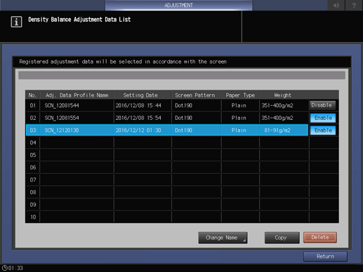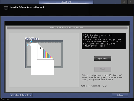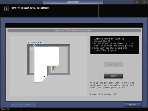 Press Return to return to the Density Balance Auto. Adjustment screen.