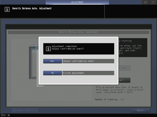 When the adjustment is completed normally, the adjustment value is automatically registered, and the screen shown below is displayed. Select whether to output the adjustment chart for confirmation purposes.