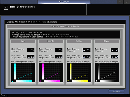 supplementary explanationPress Return to return to the Color Density Manual Control screen.