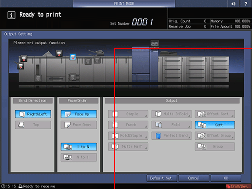 supplementary explanationPress Output Setting to display the Output Setting screen.
