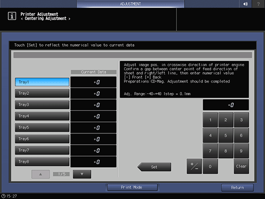 If any adjustment is required, press Exit PrintMode to return to the Centering Adjustment screen.
