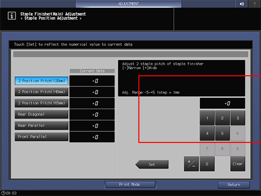 If any adjustment is required, use the touch panel keypad to enter the set value.