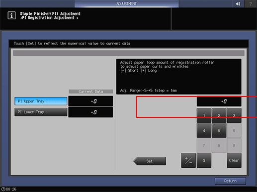 7. If any adjustment is required, use the touch panel keypad to enter the set value.