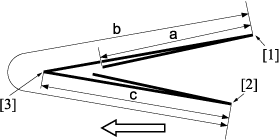 Measure the lengths (a), (b), and (c) of the printed paper.