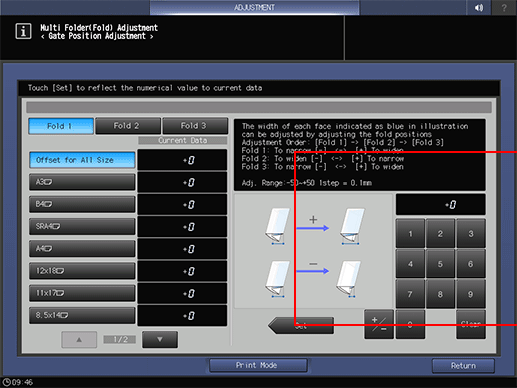 Select Fold 1, and then use the touch panel keypad to enter the set value.