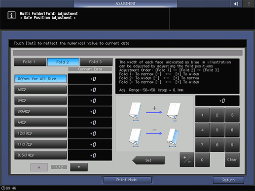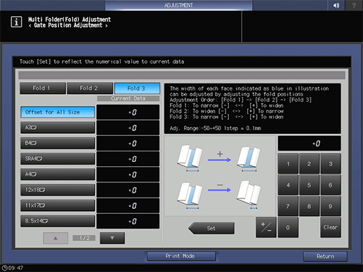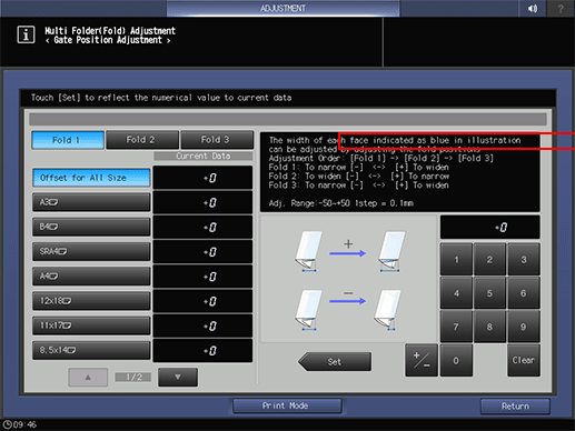 Adjust the folded positions in Z-Fold mode determined by Folding Unit FD-503.
