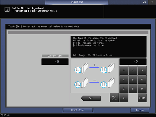 supplementary explanationAdjustment Range: -20 (To decrease the force) to +20 (To increase the force) (1 step = 0.1 mm)
