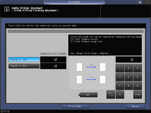 Press Exit PrintMode to return to the 2-Side Slitting Finishing Adjustment screen.