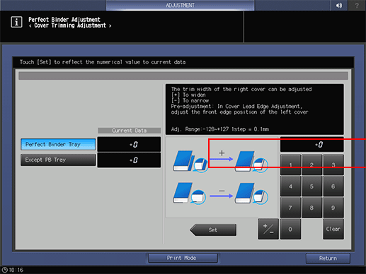 The screen returns to the Perfect Binder Adjustment Menu screen.