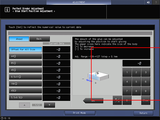 The screen returns to the Perfect Binder Adjustment Menu screen.