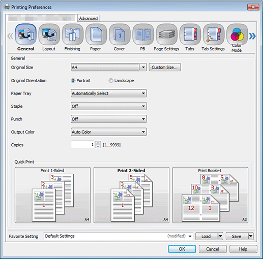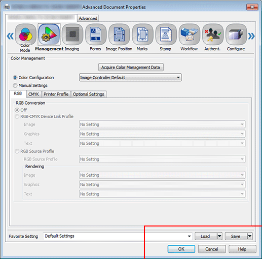 Select Default Settings for Favorite Setting and click Load.