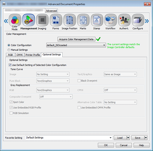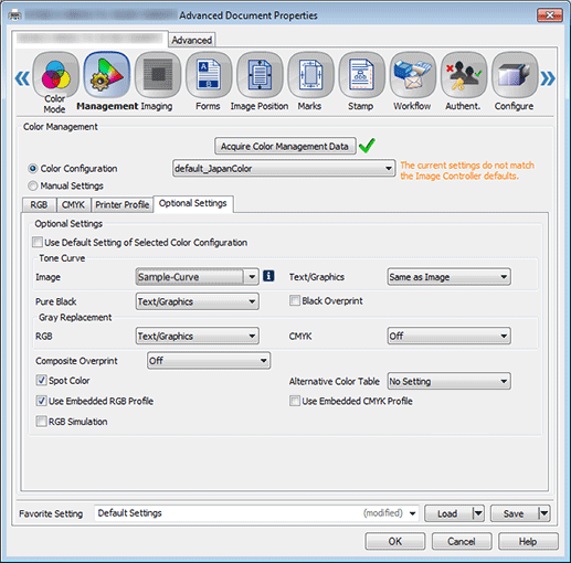 Click Optional Settings and clear Use Default Setting of Selected Color Configuration.
