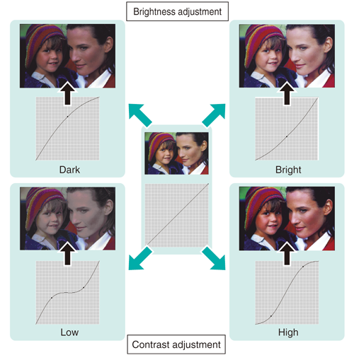 Using Color Centro, you can adjust the tone curve (I/O density curve for CMYK colors) to adjust the color tone, brightness, and contrast of the whole page.
