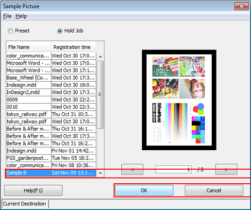 Select the file name for the temporarily saved job and click OK.