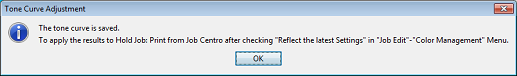 is displayed when you set a tone curve. This is because it is different from the controller's current default setting. Proceed by clicking OK.