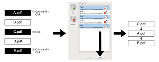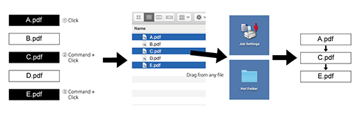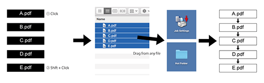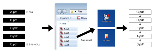 When the file list of Hot Folder is selected, files are output in the order in which they are selected.