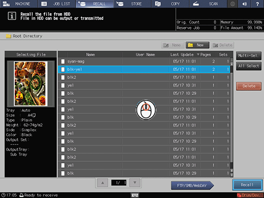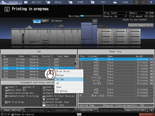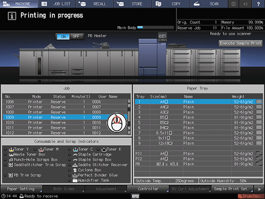 1. Make sure that there is a job on the reserved job list on the center left of the MACHINE screen.