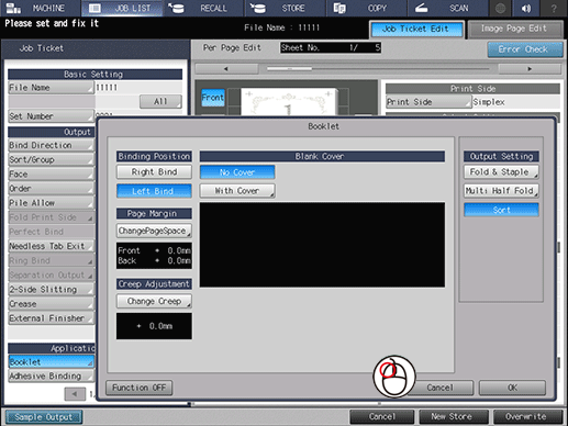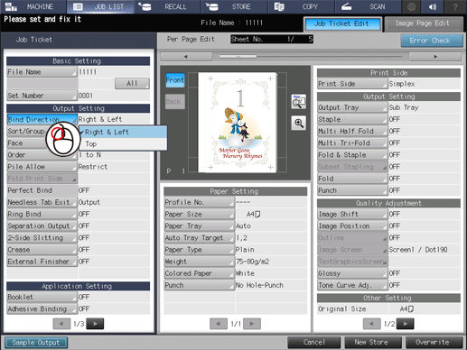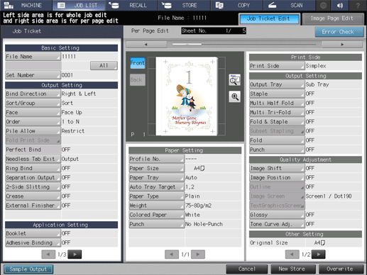 2. Confirm the following operations on the Job Ticket Edit screen.