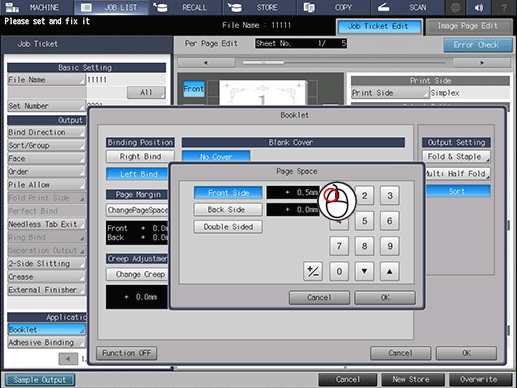 Mouse wheel number input: Press Booklet on the lower left of the screen, press ChangePageSpace, and then raise the number by rotating the wheel up.