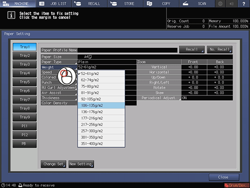 3. Confirm the following operations on the Paper Setting screen.