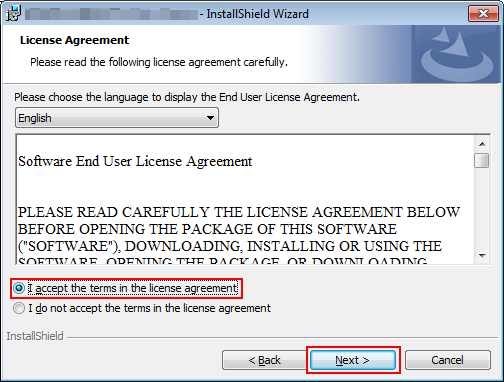 supplementary explanationBy selecting from the drop-down list, you can change the language of the license agreement.