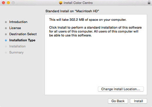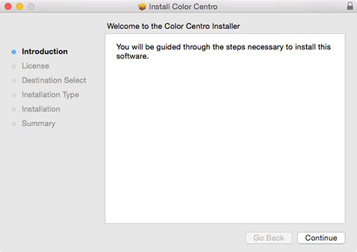 supplementary explanationIf the installer does not start, double-click ColorCentro.pkg on the CD-ROM.