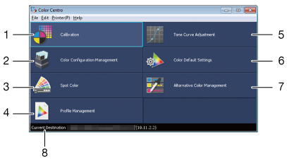 4 | Profile Management | Displays the Profile Management screen. You can manage color conversion settings. For details about the operation procedure, refer to Profile Management. |