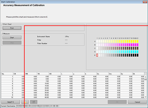 This section describes how to measure the calibration accuracy by printing the chart as of the time of calibration data reflection.