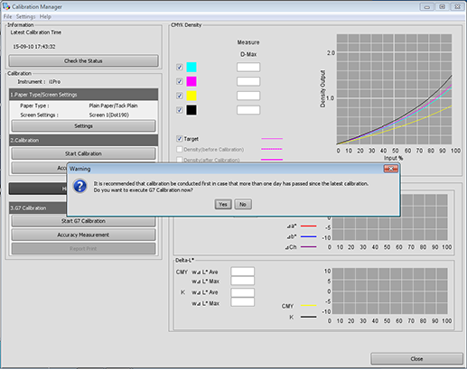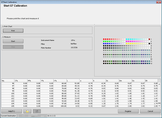 supplementary explanationIf Start G7 Calibration is not displayed on the screen, click Show G7 Calibration to display it.
