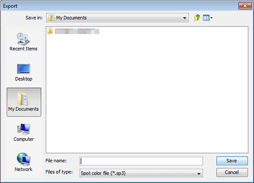 You can export a spot color table from the image controller to Local, My Documents, or Network (Extension: .sp3).