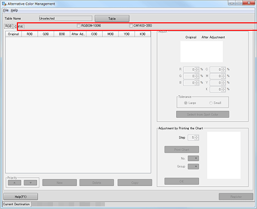 Click RGB tab or CMYK tab on Alternative Color Management screen.
