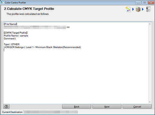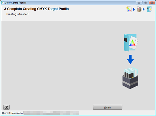 • supplementary explanationIf you launched Color Centro Profiler by clicking CMYK Target Profile on the Profile Management screen, Color Centro Profiler is closed to return to Profile Management screen.
