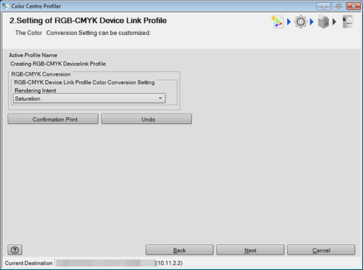 In the Color Conversion Setting screen, you specify a rendering intent.