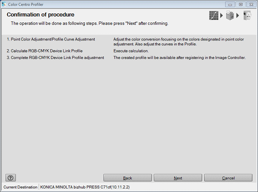 1. Click RGB-CMYK Device Link Profile on Profile Management screen.