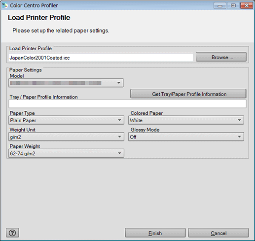 supplementary explanationWhen you click Browse, the Load Printer Profile screen is displayed. In this case, go to Step 2.