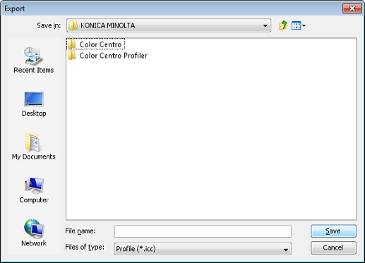 You can export an RGB source profile of the image controller to Local, My Documents, or Network.