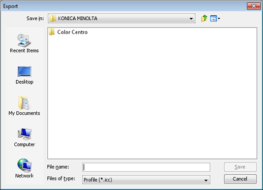 You can export a CMYK target profile of the image controller to Local, My Documents, or Network.