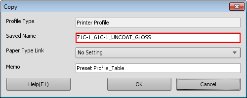supplementary explanationYou cannot save the printer profile of the same name with those in the image controller.