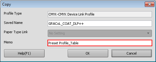 supplementary explanationYou cannot save the CMYK-CMYK device link profile of the same name with those in the image controller.