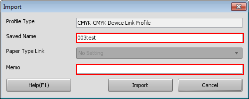 supplementary explanationWhen you select the multiple CMYK-CMYK device link profiles, Import is not available.