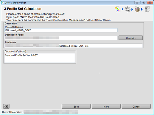 In the Comment, enter as required a comment to be embedded into the profile set you create. You can confirm the comment when you select the Profile Set on Color Centro Profiler.