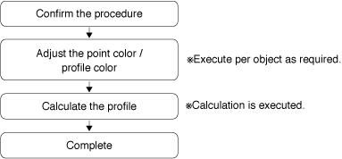 The wizard screen appears by launching Color Centro Profiler. Follow the instructions on the screen to execute the point color adjustment / profile curve adjustment.