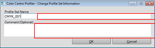 Up to 96 one-byte characters can be entered to Profile Set Name. Up to 128 one-byte characters (64 two-byte characters) can be entered to Comment (Optional).