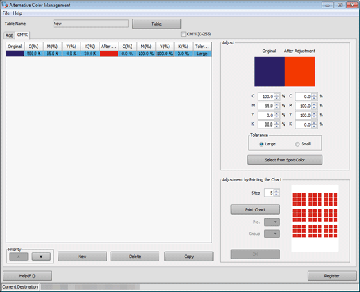 The colors being set are displayed under Adjust. Color in Original indicates the source CMYK color while the color in After Adjustment indicates the alternative color.