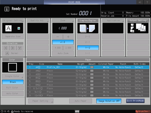 When the PRINT MODE screen is displayed, press Start on the control panel.