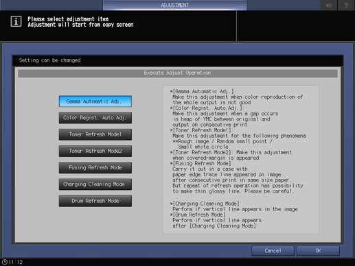 2. Press Execute Adjust Operation on the Adjustment Menu screen.