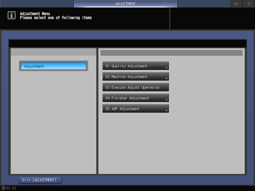 1. On the touch panel of the main body, press Adjustment on the MACHINE screen.