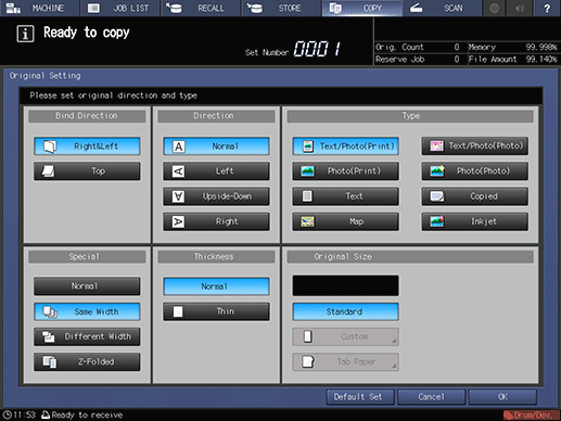 Make this setting to copy the mixed-size original set scanned from ADF with Auto Paper or Auto Zoom function activated.