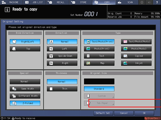 With z-folded originals loaded in the ADF, the size detection sensor may not function properly due to the floaty original. To detect the correct size while scanning the original, set this mode.