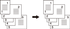 Copies onto a single and desired paper size in appropriate zoom ratio automatically selected for each original page.